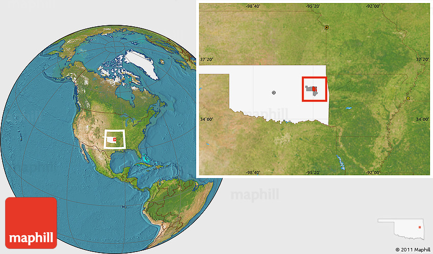 Maphill is a collection of map images. This image combines a satellite map with the globe centered on ZIP code 74403. Use the buttons under the image to switch to different map types.