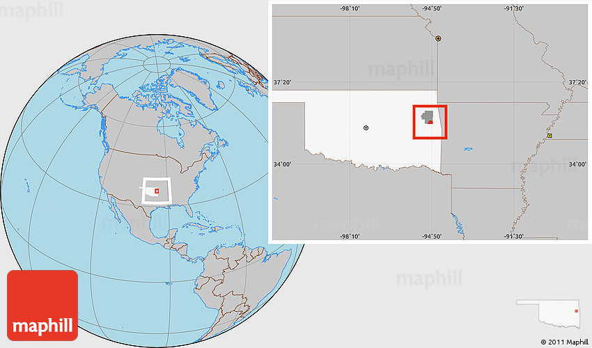 Maphill is a collection of map images. This image combines a gray map with the globe centered on ZIP code 74427. Use the buttons under the image to switch to different map types.