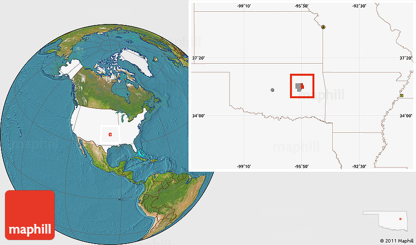 Maphill is a collection of map images. This image combines a satellite map with the globe centered on ZIP code 74445. Use the buttons under the image to switch to different map types.