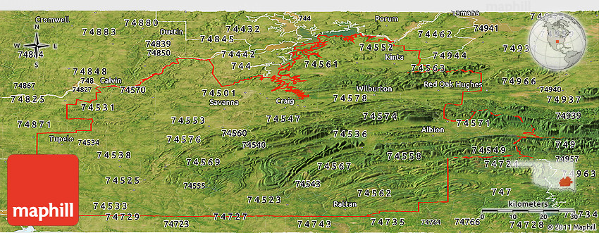 Satellite Panoramic Map of ZIP Codes Starting with 745