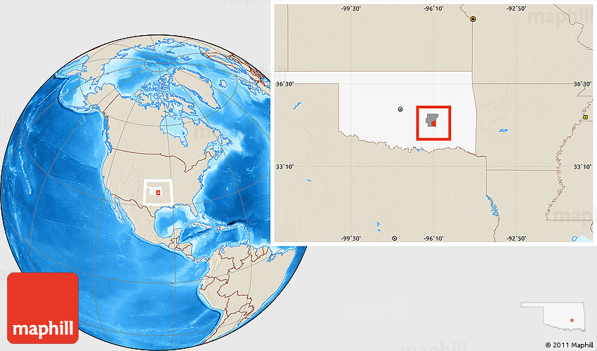 Maphill is a collection of map images. This image combines a shaded relief map with the globe centered on ZIP code 74570. Use the buttons under the image to switch to different map types.