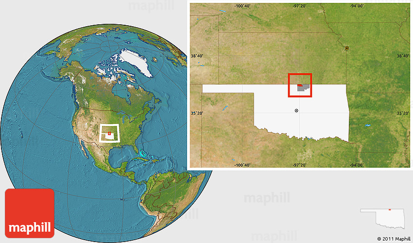 Maphill is a collection of map images. This image combines a satellite map with the globe centered on ZIP code 74632. Use the buttons under the image to switch to different map types.