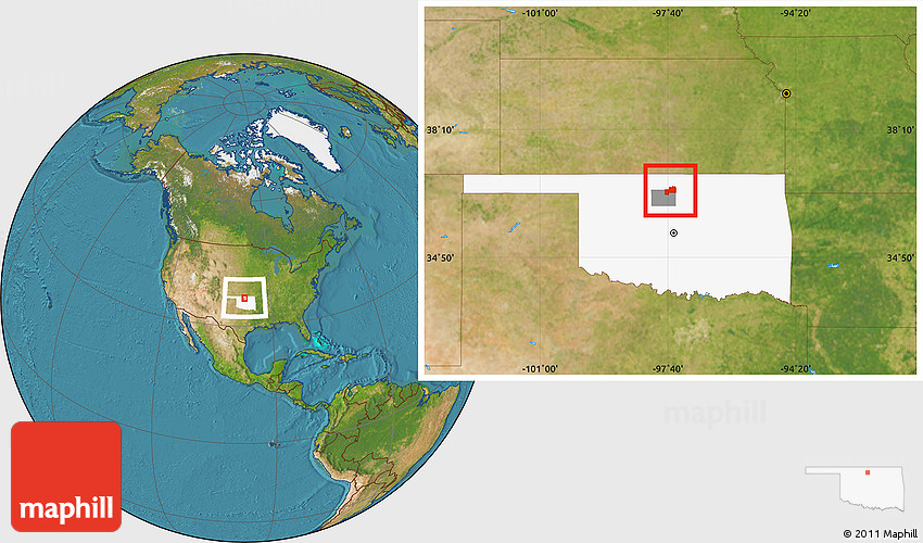 Maphill is a collection of map images. This image combines a satellite map with the globe centered on ZIP code 74640. Use the buttons under the image to switch to different map types.