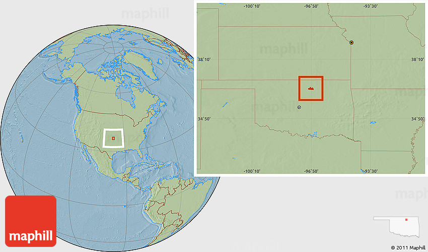 Maphill is a collection of map images. This image combines a savanna style map with the globe centered on ZIP code 74650. Use the buttons under the image to switch to different map types.