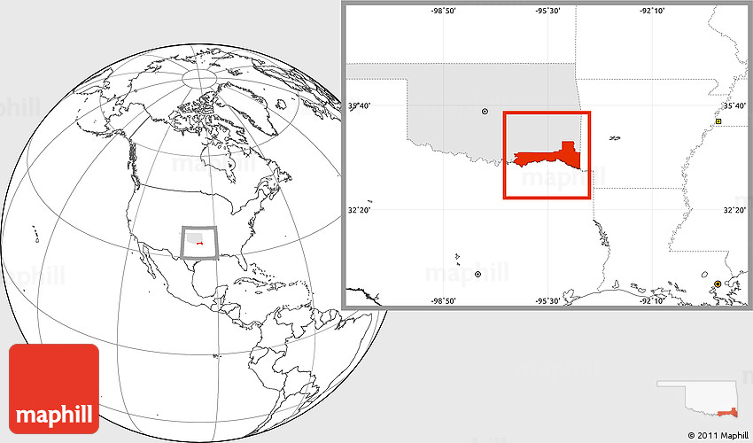 Maphill is a collection of map images. This image combines a blank map with the globe centered on ZIP codes starting with 747. Use the buttons under the image to switch to different map types.