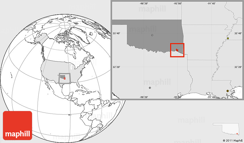 Maphill is a collection of map images. This image combines a blank map with the globe centered on ZIP code 74764. Use the buttons under the image to switch to different map types.