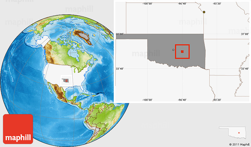 Maphill is a collection of map images. This image combines a physical map with the globe centered on ZIP code 74868. Use the buttons under the image to switch to different map types.