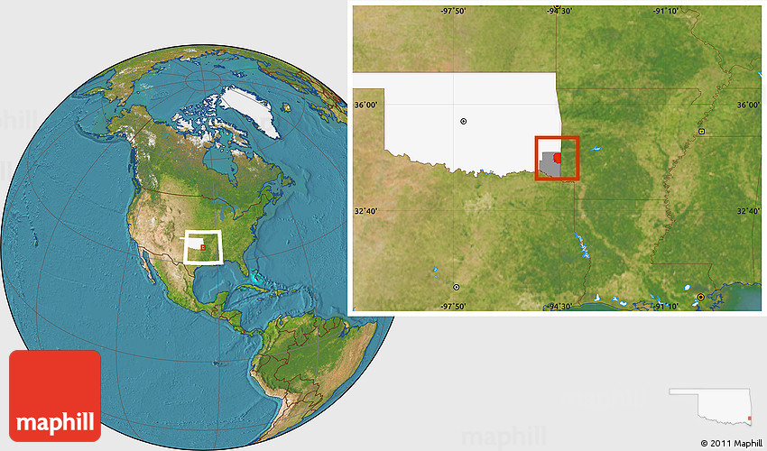 Maphill is a collection of map images. This image combines a satellite map with the globe centered on ZIP code 74963. Use the buttons under the image to switch to different map types.