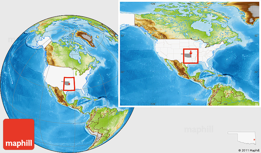 Maphill is a collection of map images. This image combines a physical map with the globe centered on ZIP code 74966. Use the buttons under the image to switch to different map types.