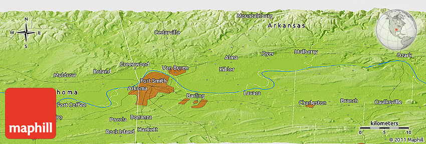The panoramic physical map represents one of many map types and styles available. Look at Coal Creek, Le Flore County, Oklahoma, United States from different perspectives.