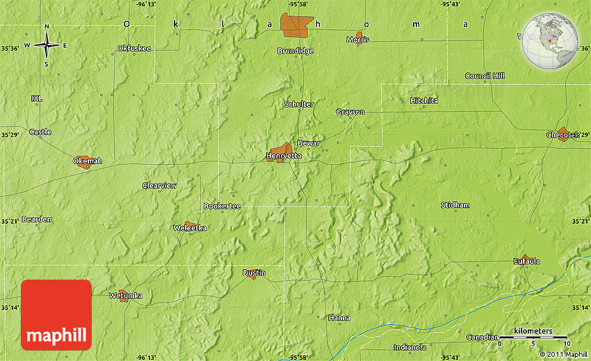 Sure, this physical map is nice. But there is good chance you will like other map styles even more. Select another style in the above table. See Schulter and Oklahoma from a different view.