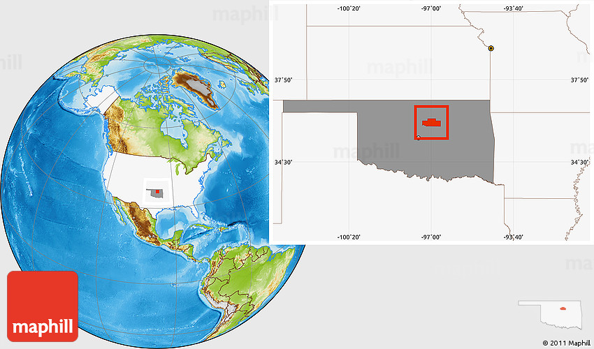 Maphill is a collection of map images. This image combines a physical map with the globe centered on Payne County. Use the buttons under the image to switch to different map types.