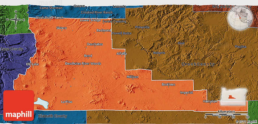 Each map style has its advantages. No map type is the best. The best is that Maphill lets you look at Deschutes County from many different perspectives.