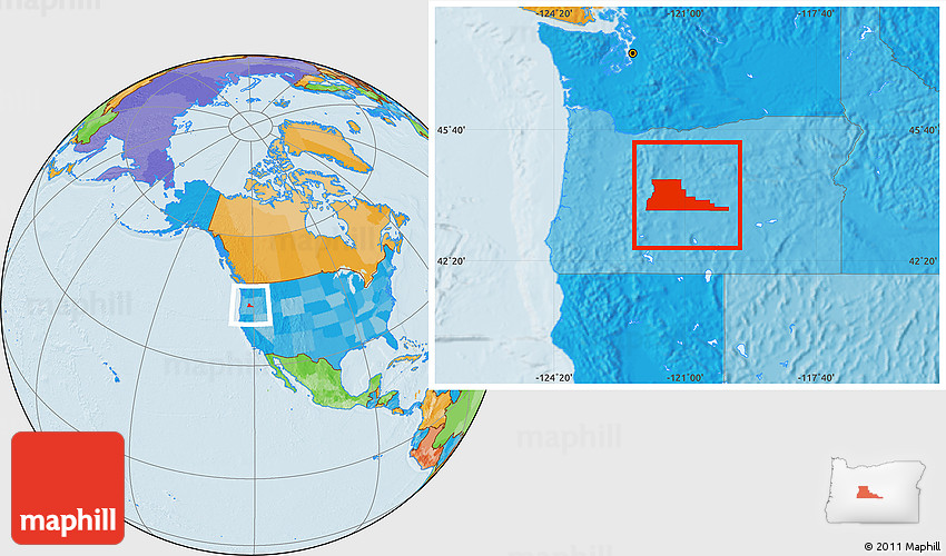 Maphill is a collection of map images. This image combines a political map with the globe centered on Deschutes County. Use the buttons under the image to switch to different map types.