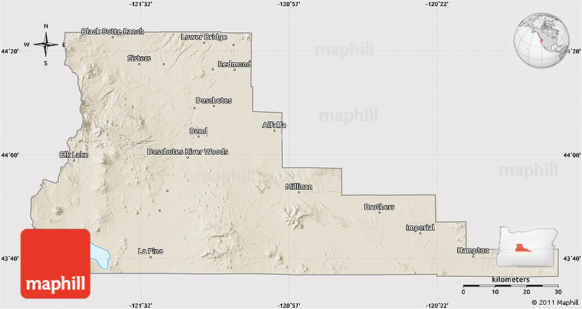 Maphill is a collection of map images. This shaded relief map of Deschutes County is one of them. Click on the Detailed button under the image to switch to a more detailed map.