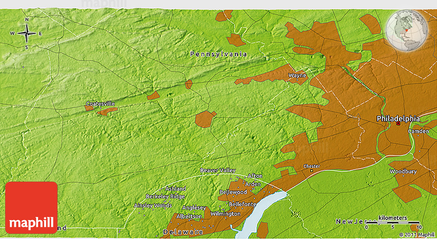 The 3D physical map represents one of many map types and styles available. Look at Southwest Schuylkill, Philadelphia County, Pennsylvania, United States from different perspectives.