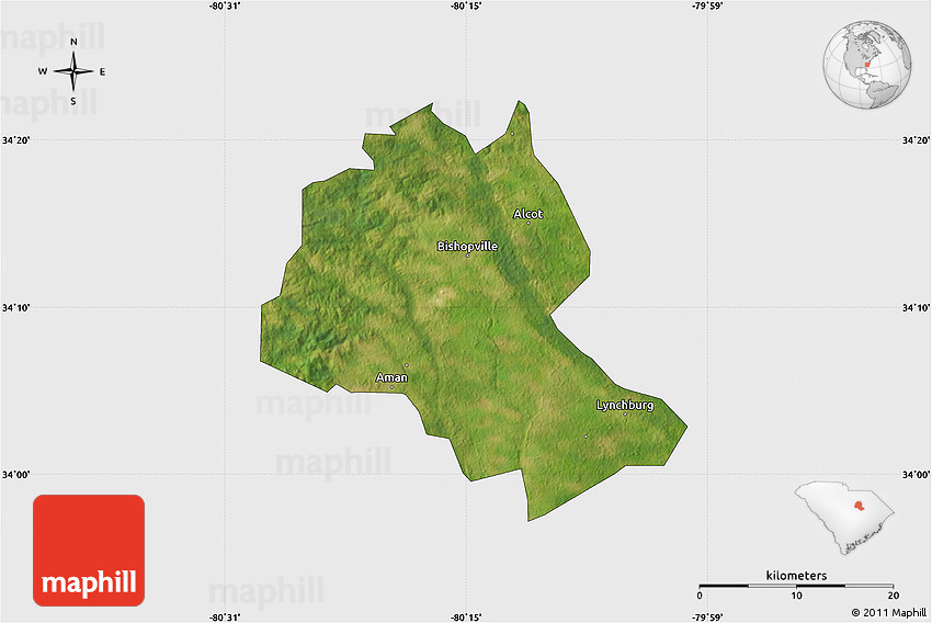 The flat satellite map represents one of several map types and styles available. Look at Lee County, South Carolina, United States from different perspectives.