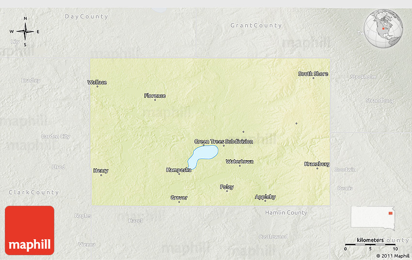 The value of Maphill lies in the possibility to look at the same area from several perspectives. Maphill presents the map of Codington County in a wide variety of map types and styles.