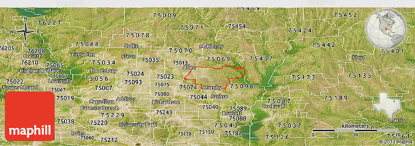 Use the buttons for Facebook, Twitter or Google+ to share a link to this satellite map of ZIP code 75002. Maphill is the largest map gallery on the web. However, if the number of maps was the only reason to visit Maphill, then it's really not much.