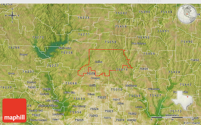 Use the buttons for Facebook, Twitter or Google+ to share a link to this satellite map of ZIP code 75009. Maphill is the largest map gallery on the web. However, if the number of maps was the only reason to visit Maphill, then it's really not much.