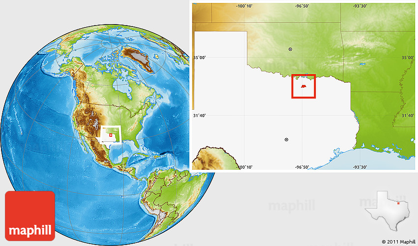 Maphill is a collection of map images. This image combines a physical map with the globe centered on ZIP code 75009. Use the buttons under the image to switch to different map types.