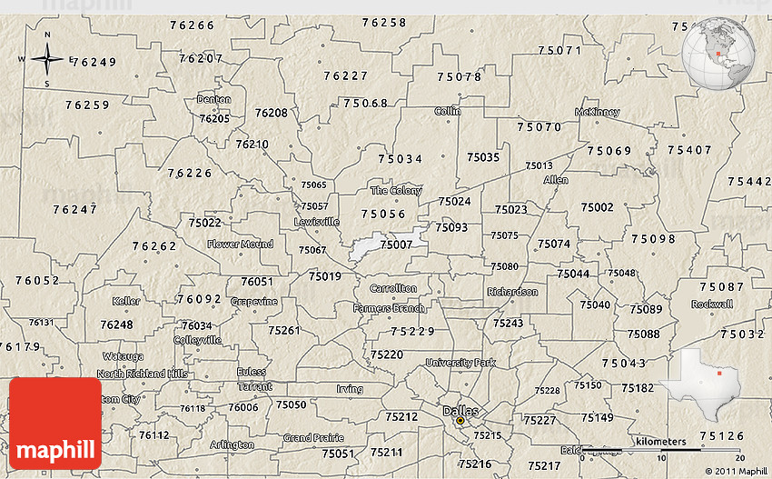 Maphill is a collection of map images. This view of ZIP code 75010 at an angle of 60° is one of these images. Click on the Detailed button under the map for a more comprehensive map.