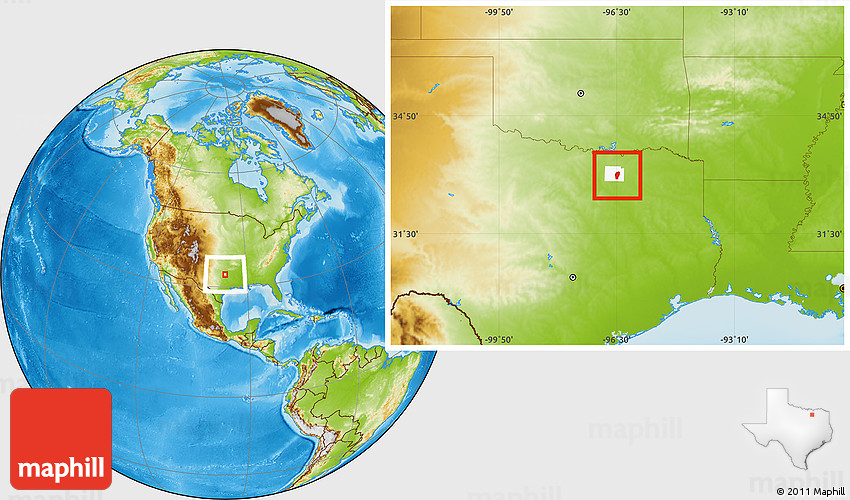 Maphill is a collection of map images. This image combines a physical map with the globe centered on ZIP code 75407. Use the buttons under the image to switch to different map types.