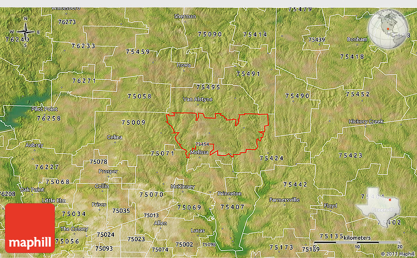 Use the buttons for Facebook, Twitter or Google+ to share a link to this satellite map of ZIP code 75409. Maphill is the largest map gallery on the web. However, if the number of maps was the only reason to visit Maphill, then it's really not much.