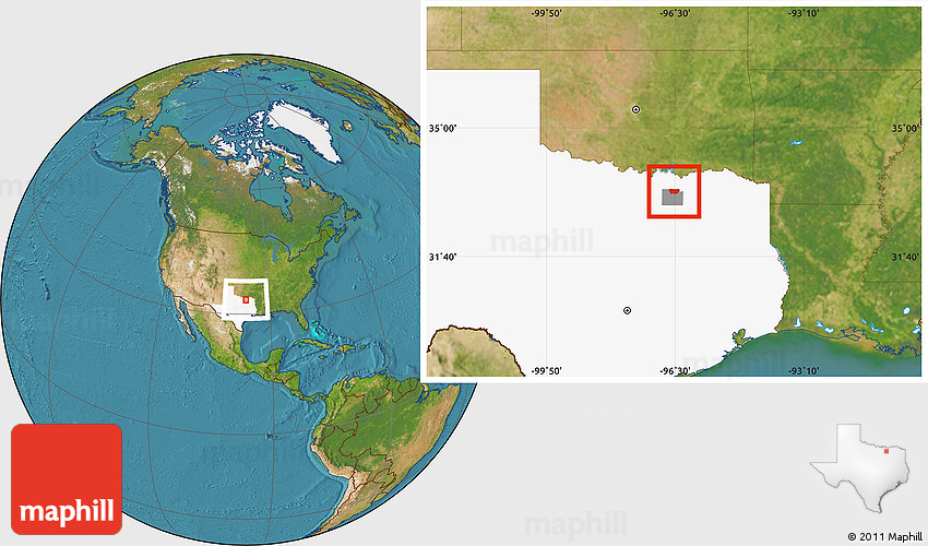 Maphill is a collection of map images. This image combines a satellite map with the globe centered on ZIP code 75409. Use the buttons under the image to switch to different map types.