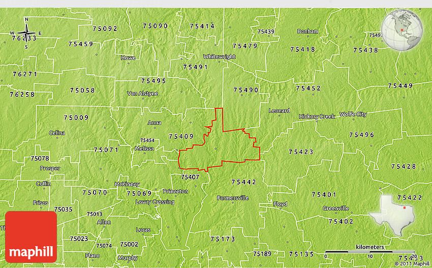 Use the buttons for Facebook, Twitter or Google+ to share a link to this physical map of ZIP code 75424. Maphill is the largest map gallery on the web. However, if the number of maps was the only reason to visit Maphill, then it's really not much.