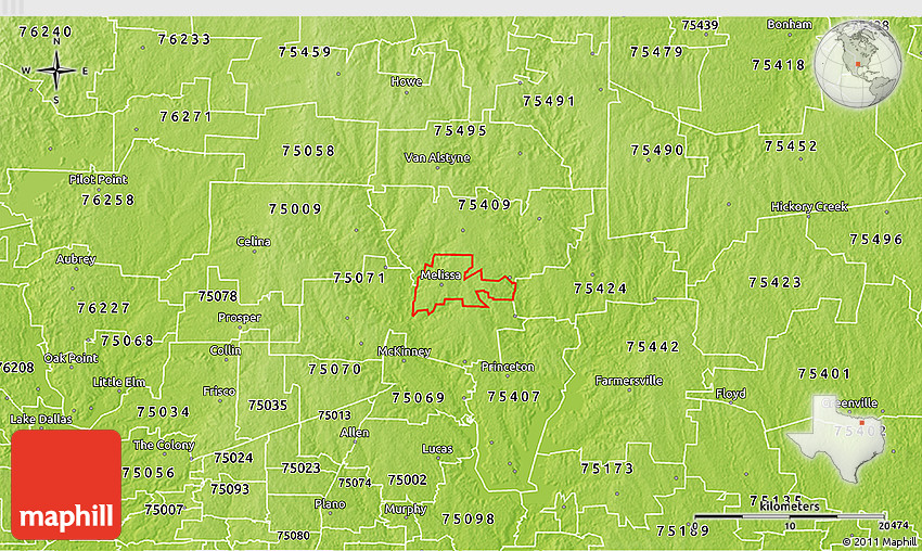 Use the buttons for Facebook, Twitter or Google+ to share a link to this physical map of ZIP code 75454. Maphill is the largest map gallery on the web. However, if the number of maps was the only reason to visit Maphill, then it's really not much.