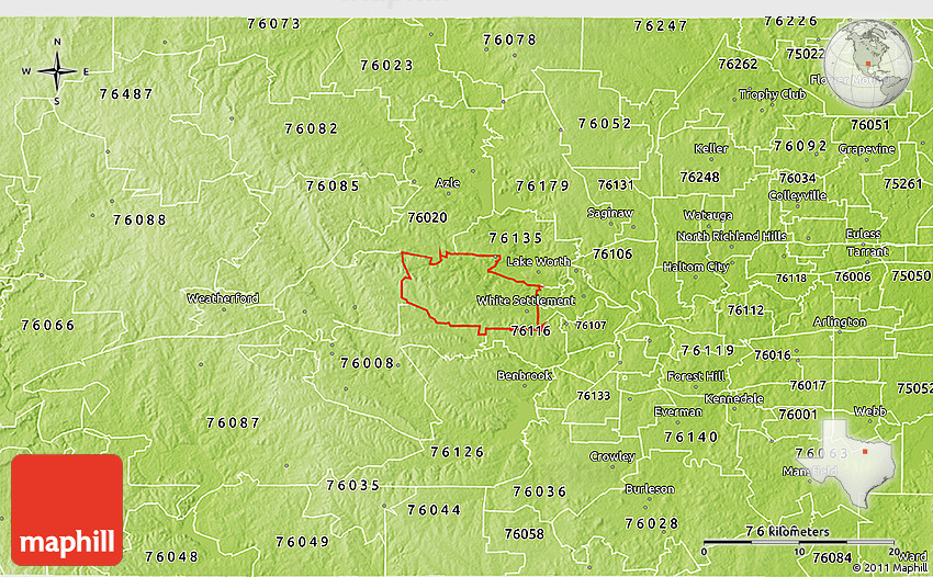 Use the buttons for Facebook, Twitter or Google+ to share a link to this physical map of ZIP code 76108. Maphill is the largest map gallery on the web. However, if the number of maps was the only reason to visit Maphill, then it's really not much.