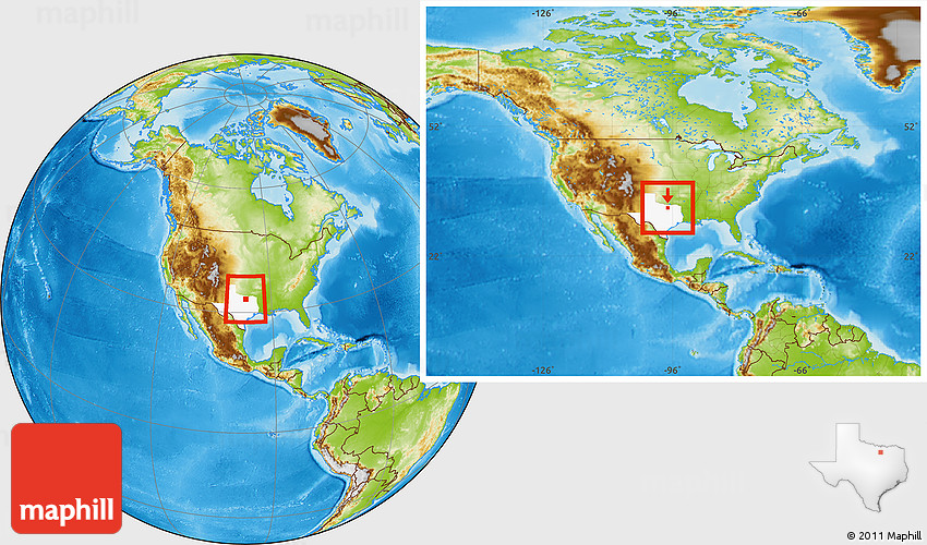 Maphill is a collection of map images. This image combines a physical map with the globe centered on ZIP code 76226. Use the buttons under the image to switch to different map types.