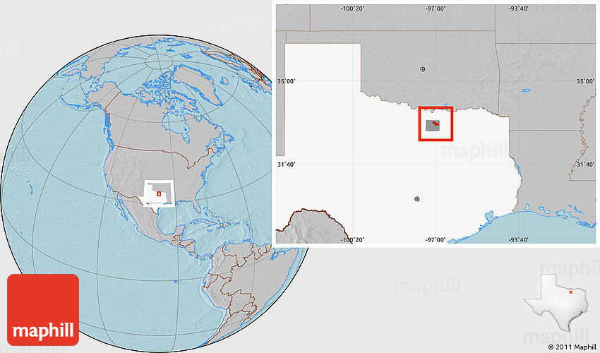 Maphill is a collection of map images. This image combines a gray map with the globe centered on ZIP code 76227. Use the buttons under the image to switch to different map types.