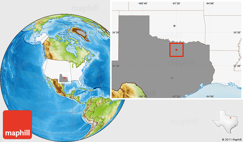 Maphill is a collection of map images. This image combines a physical map with the globe centered on ZIP code 76247. Use the buttons under the image to switch to different map types.