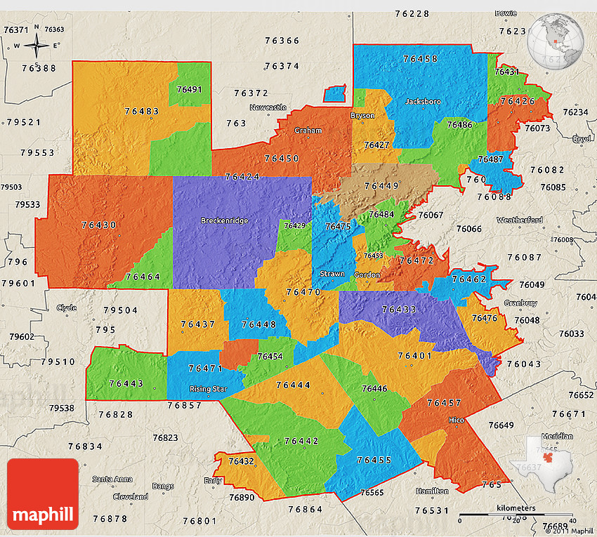 The 3D political map represents one of several map types and styles available. Look at ZIP codes starting with 764 from different perspectives.