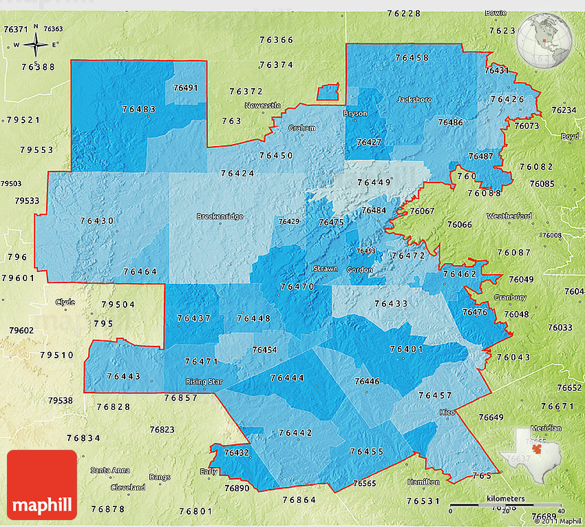 The 3D political shades map represents one of several map types and styles available. Look at ZIP codes starting with 764 from different perspectives.