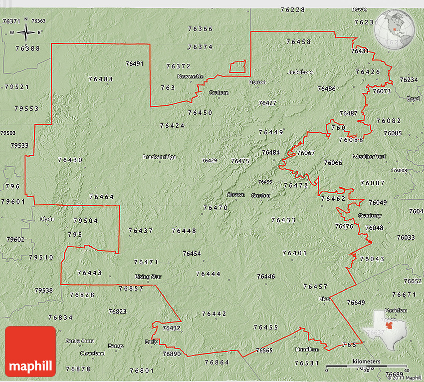 The 3D savanna style map represents one of several map types and styles available. Look at ZIP codes starting with 764 from different perspectives.