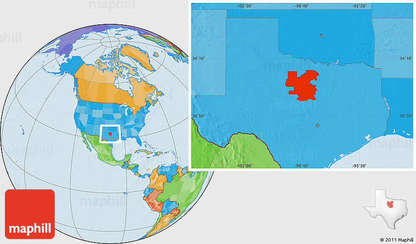 Maphill is a collection of map images. This image combines a political map with the globe centered on ZIP codes starting with 764. Use the buttons under the image to switch to different map types.