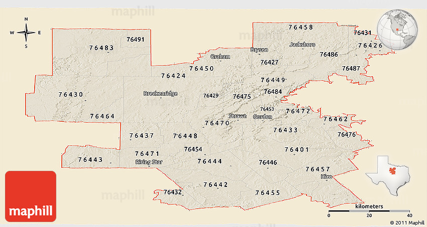 Each map style has its advantages. No map type is the best. The best is that Maphill lets you look at the whole area of ZIP codes starting with 764 from several different angles.