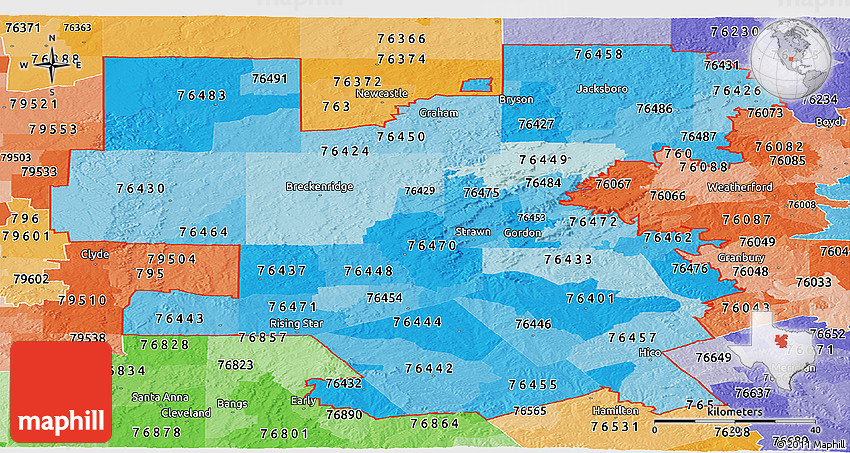 The panoramic political shades map represents one of several map types and styles available. Look at ZIP codes starting with 764 from different perspectives.