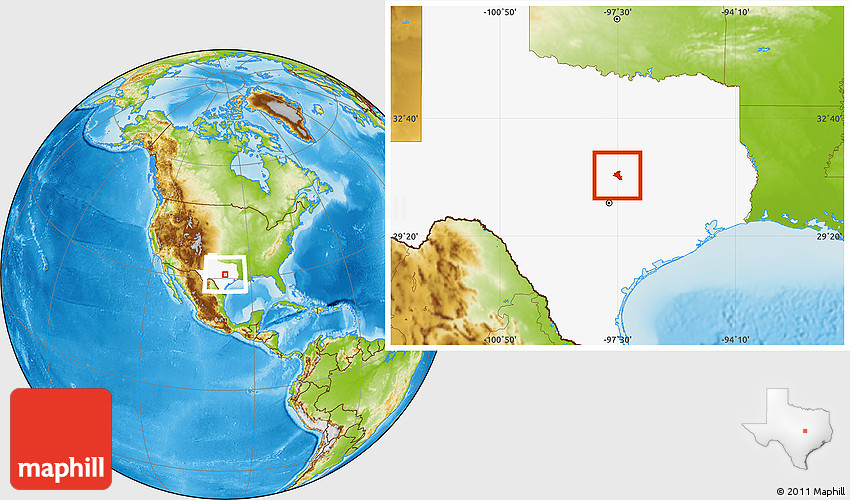 Maphill is a collection of map images. This image combines a physical map with the globe centered on ZIP code 76513. Use the buttons under the image to switch to different map types.