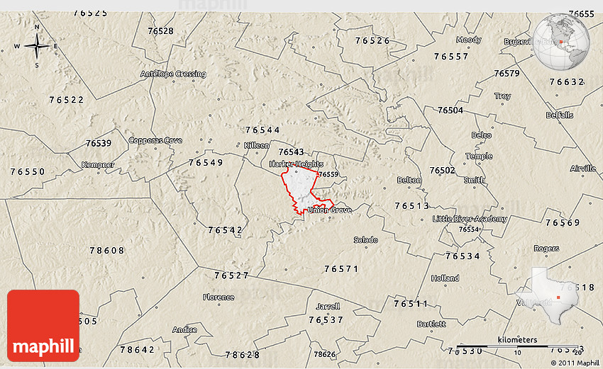 The 3D classic style ZIP code map represents one of several map styles available. Look at ZIP code 76548 from different perspectives.