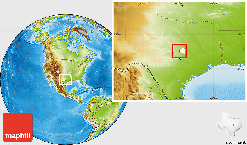 Maphill is a collection of map images. This image combines a physical map with the globe centered on ZIP code 76549. Use the buttons under the image to switch to different map types.