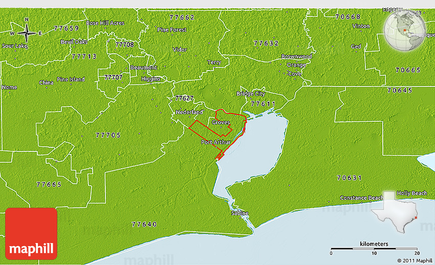 Use the buttons for Facebook, Twitter or Google+ to share a link to this physical map of ZIP code 77642. Maphill is the largest map gallery on the web. However, if the number of maps was the only reason to visit Maphill, then it's really not much.