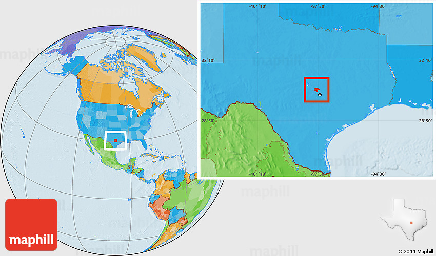Maphill is a collection of map images. This image combines a political map with the globe centered on ZIP code 78641. Use the buttons under the image to switch to different map types.