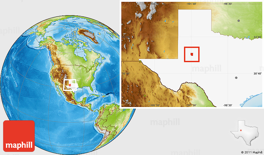 Maphill is a collection of map images. This image combines a physical map with the globe centered on ZIP code 79749. Use the buttons under the image to switch to different map types.