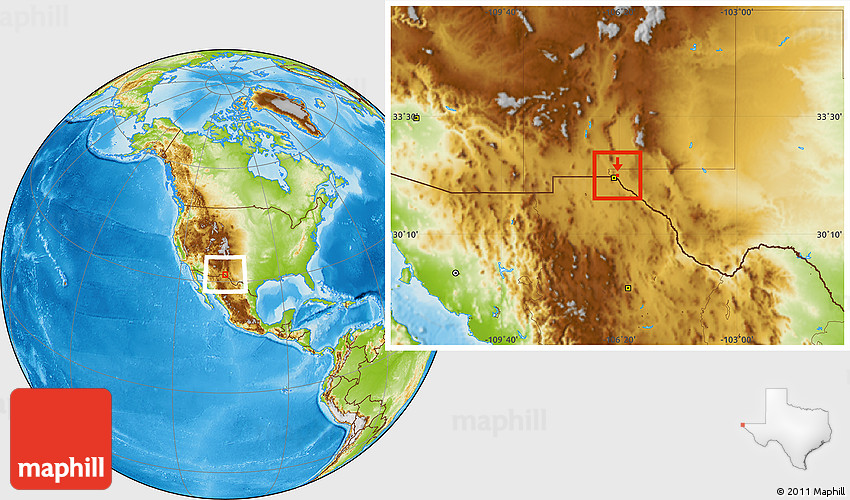 Maphill is a collection of map images. This image combines a physical map with the globe centered on ZIP code 79908. Use the buttons under the image to switch to different map types.