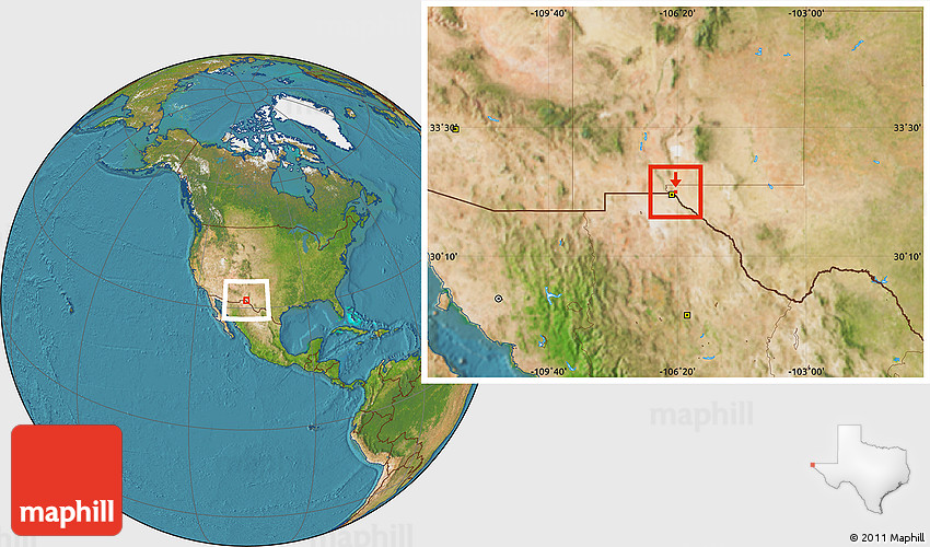 Maphill is a collection of map images. This image combines a satellite map with the globe centered on ZIP code 79908. Use the buttons under the image to switch to different map types.