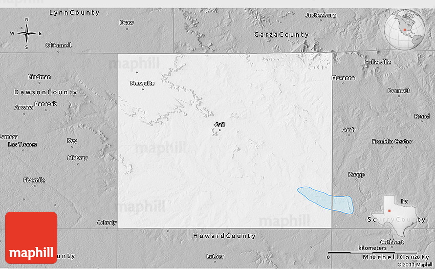 The grey colored map. Borden County is highlighted in white. This color scheme is similar to silver styled maps, but compared to the latter, a darker shade of gray is used.
